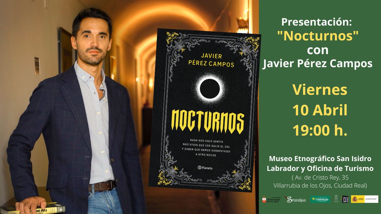 El viernes 10 de abril, a las19:00 h., en el Museo Etnográfico San Isidro Labrador y Oficina de Turismo ( Av. de Cristo Rey, 35- Villarrubia de los Ojos, Ciudad Real) se presentará: «Nocturnos» con Javier Pérez Campos.