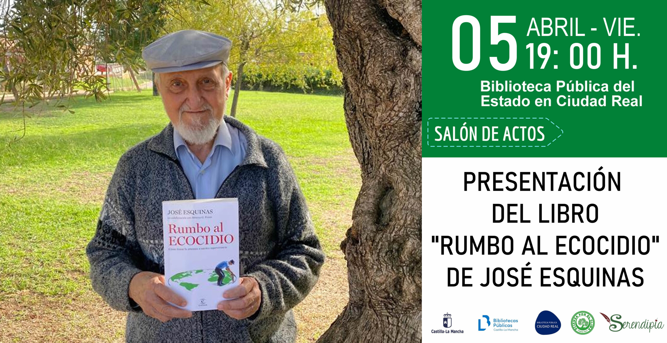 El viernes 5 de abril , a las 19:00 h., en la Biblioteca Pública del Estado de Ciudad Real, tendrá lugar la Presentación: «Rumbo al ecocidio” con José Esquinas Alcázar.